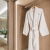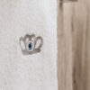 Set of three towels including body, face, and hand towels, featuring a grey embroidered crown with an eye motif, symbolizing protection and elegance. Each towel offers superior absorbency and a plush, luxurious feel.
