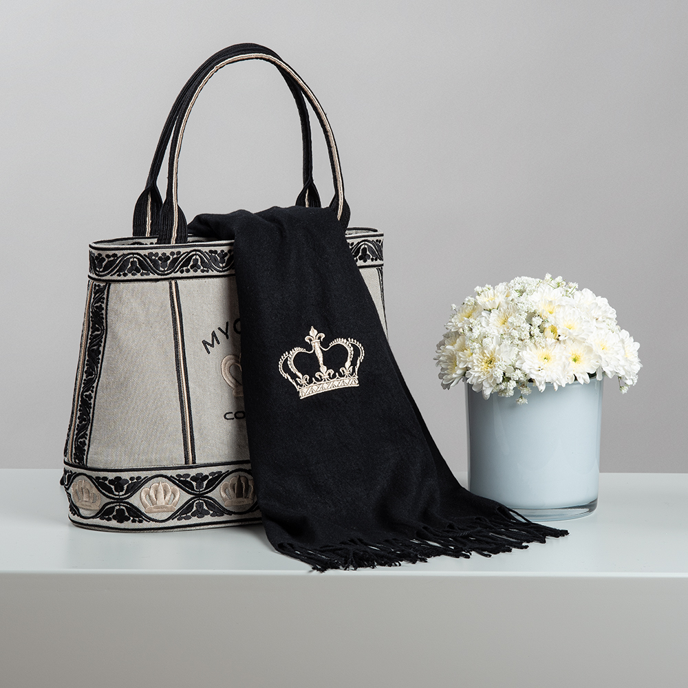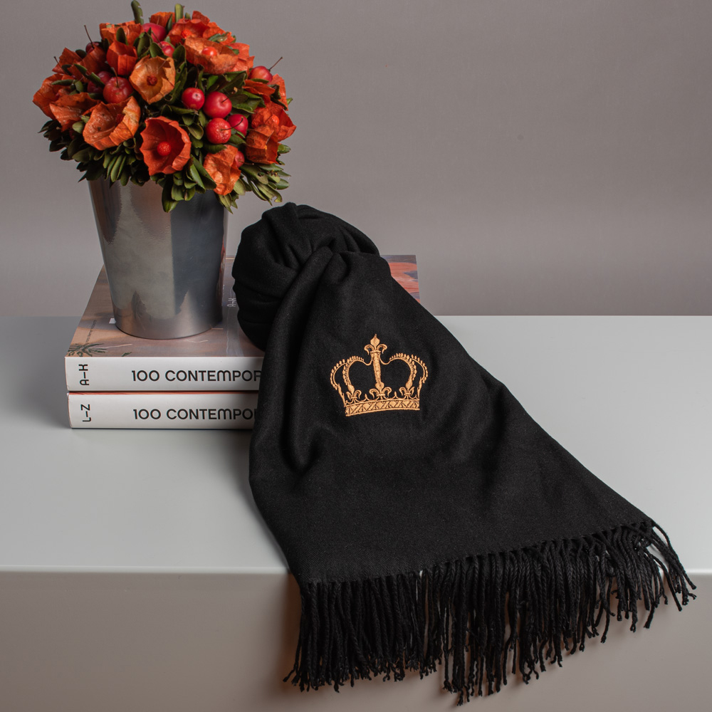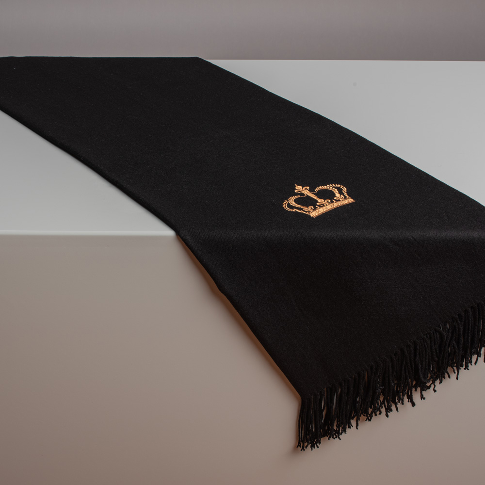Black Unisex Water Absorving Breathable Wrap, With Golden Crown Embroidery