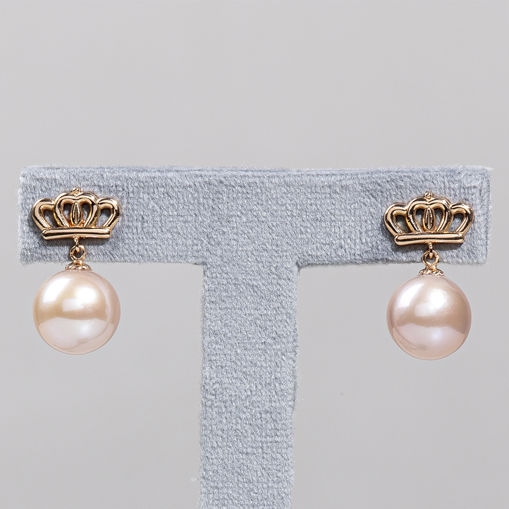 Rose Gold Crown Earrings With Pink Edison Pearls, in Collaboration With Pearls Center