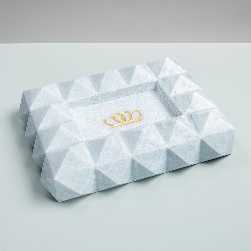 A refined decorative object sculpted from Dionysos marble, designed to elevate any interior with understated elegance. Its handcrafted geometric surface highlights the natural veining of the stone, while the gold crown detail introduces the signature touch of the MyCrown Collection. Perfect as an ashtray or decorative centerpiece, it brings a subtle sculptural presence to your space. Each item is unique due to the natural characteristics of the marble, in collaboration with Georgiou Atelier.