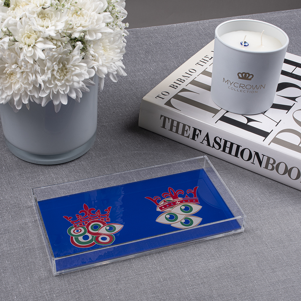Plexiglass Tray With Blue Base, Red Crowns & Evil Eyes In Collaboration With Liana Vourakis