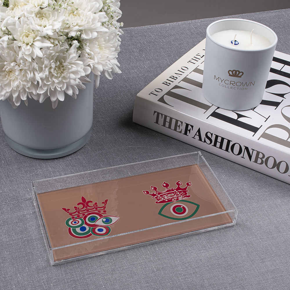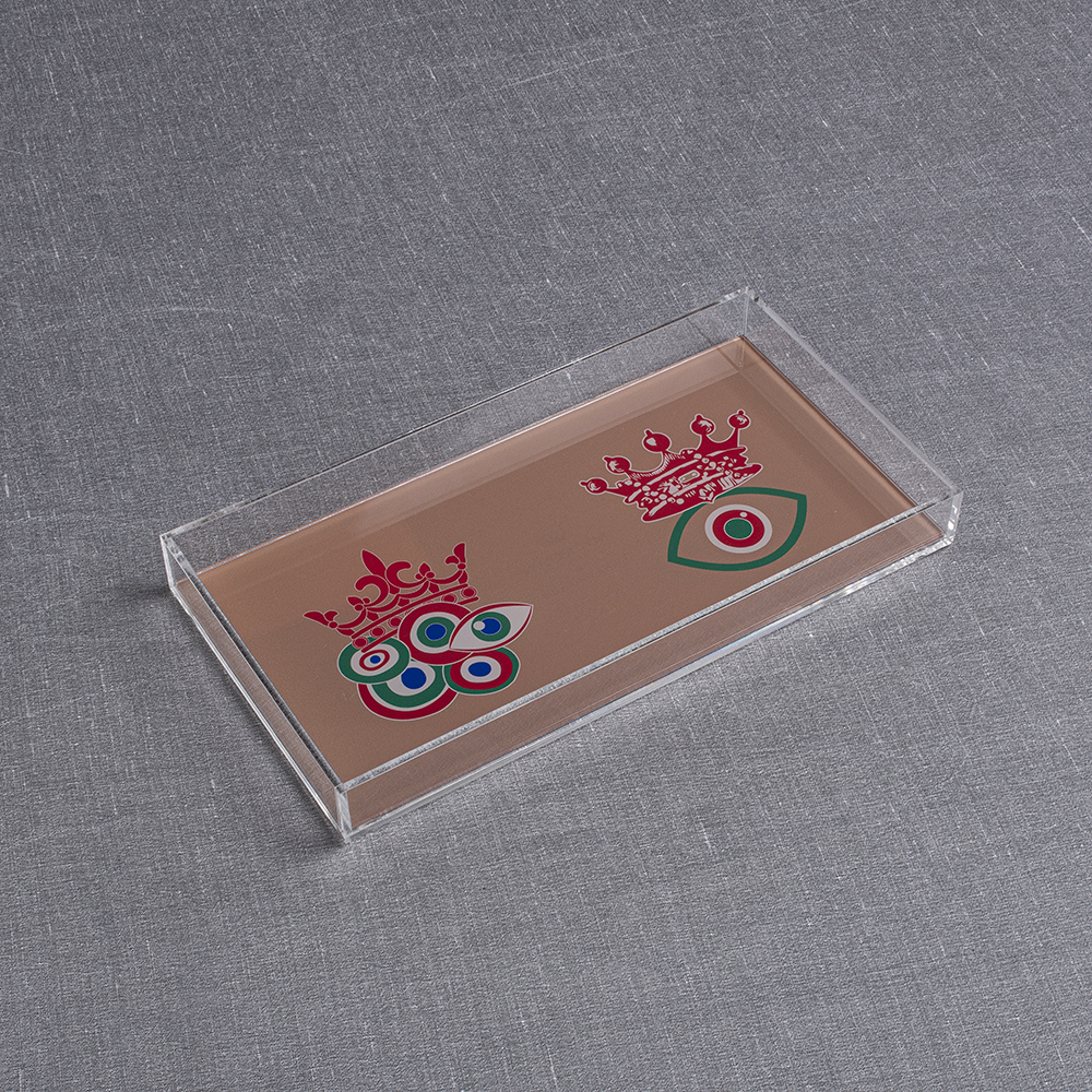 Plexiglass Tray With Brown Base, Red Crowns & Evil Eyes In Collaboration With Liana Vourakis