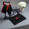 Black Apron, Pot Holder & Oven Mitt Set, With Red Details & Crown Embroidery