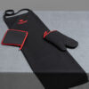 Black Apron, Pot Holder & Oven Mitt Set, With Red Details & Crown Embroidery