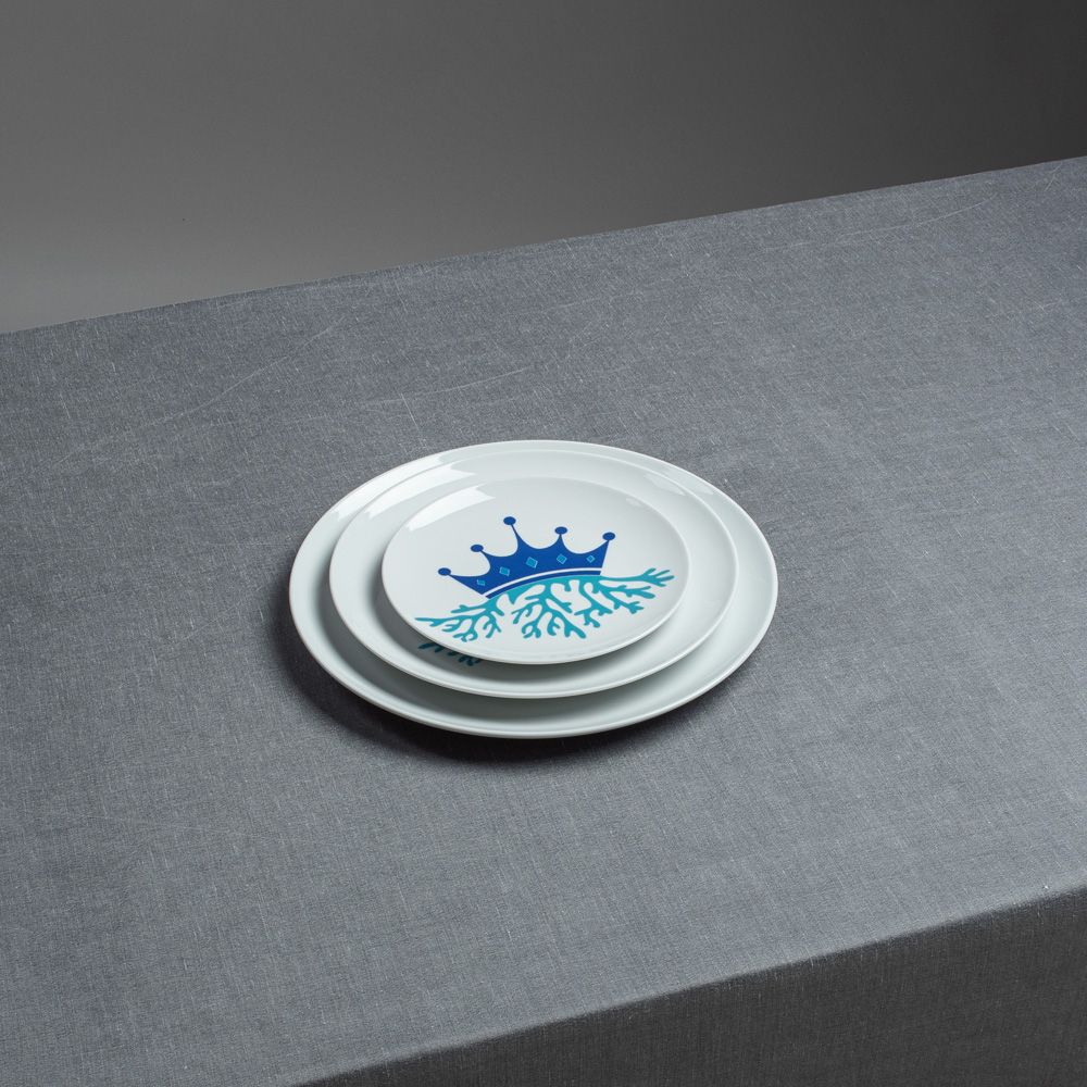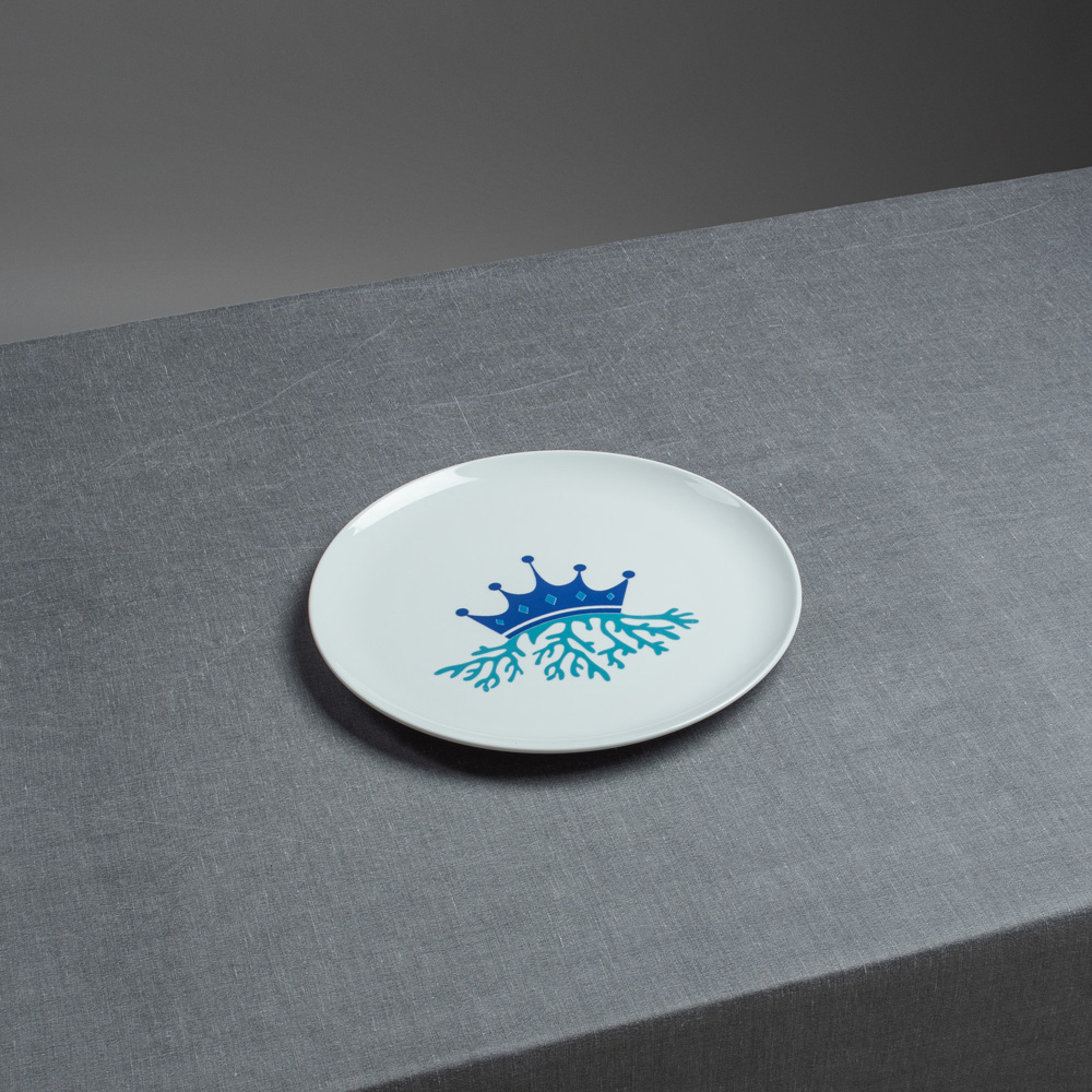 Charger Plate With Blue Crown & Turquoise Coral, In Collaboration With Liana Vourakis