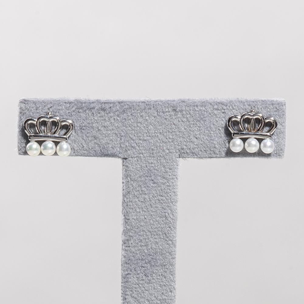 White Gold Crown Earrings With Pearls, In Collaboration With Pearls Center