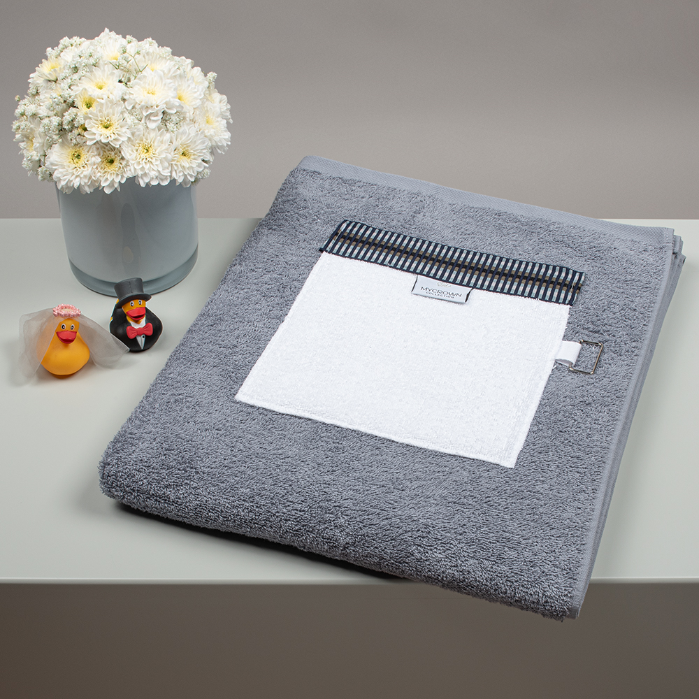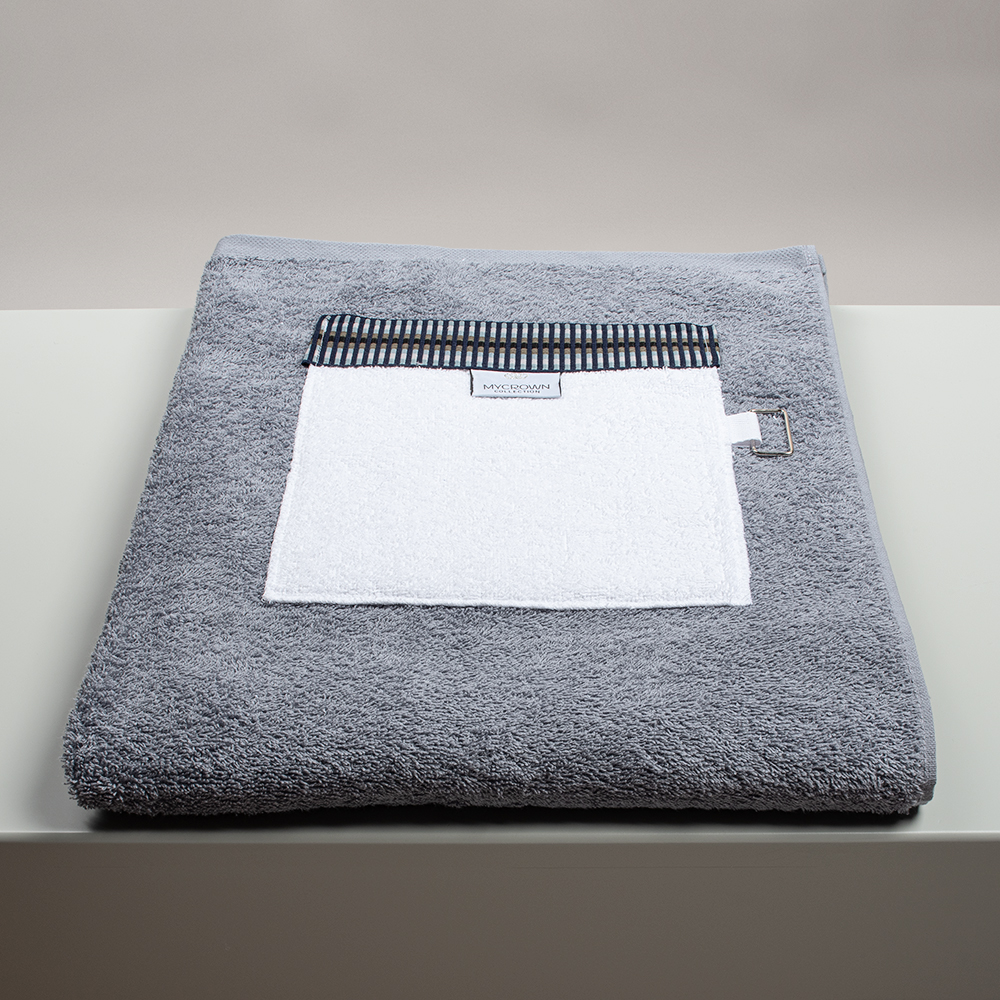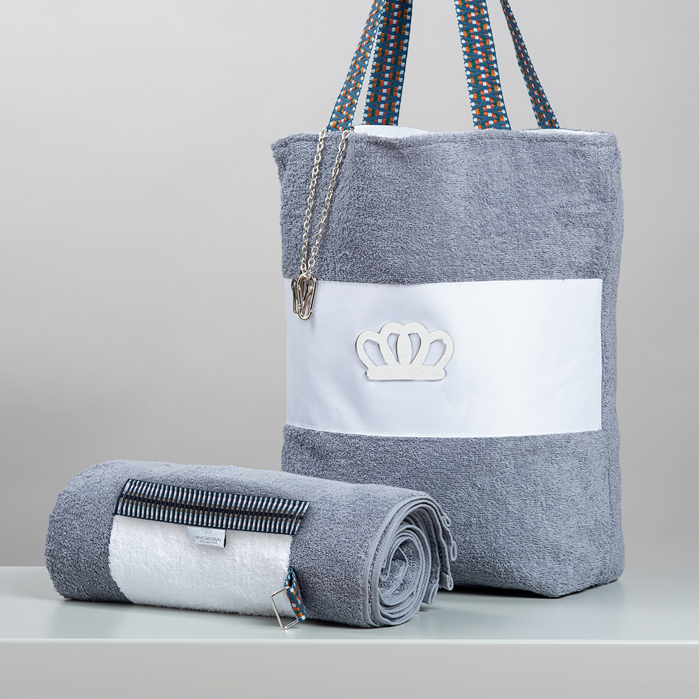 Light Grey Beach Towel, With Pocket & Metallic Details