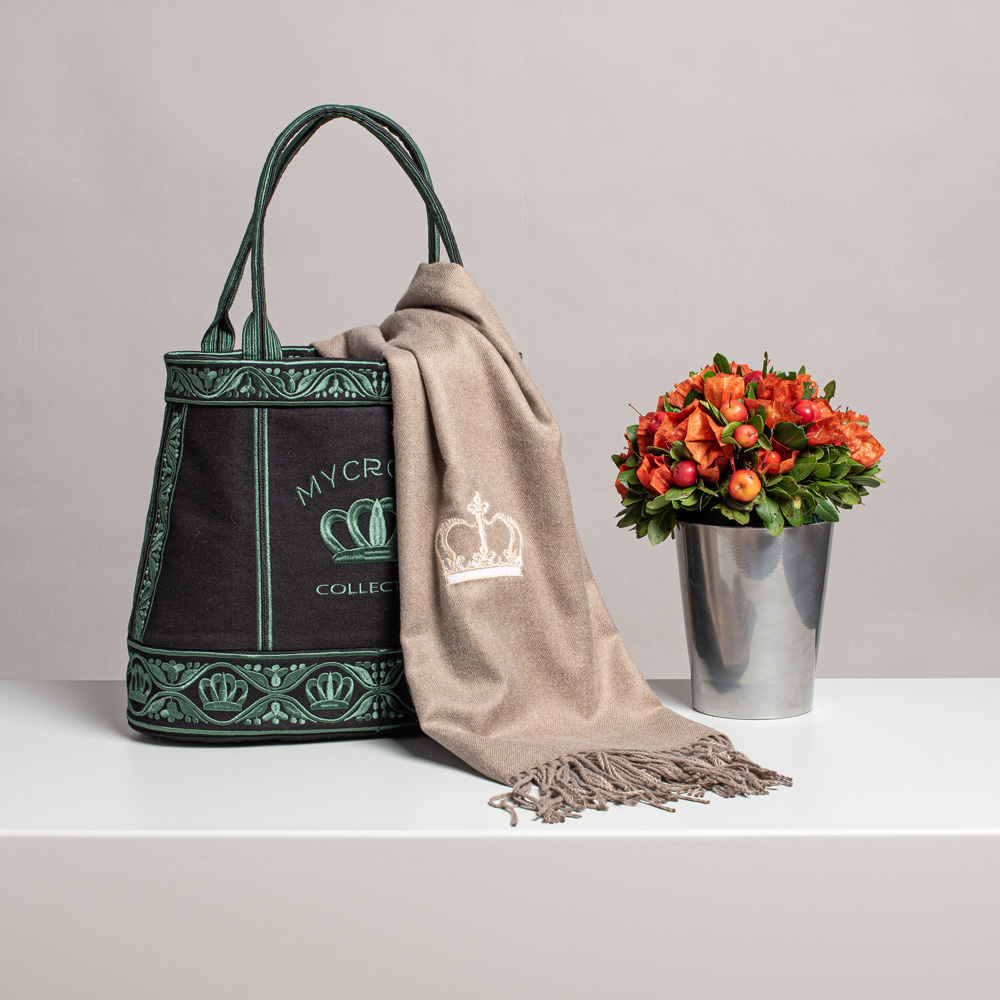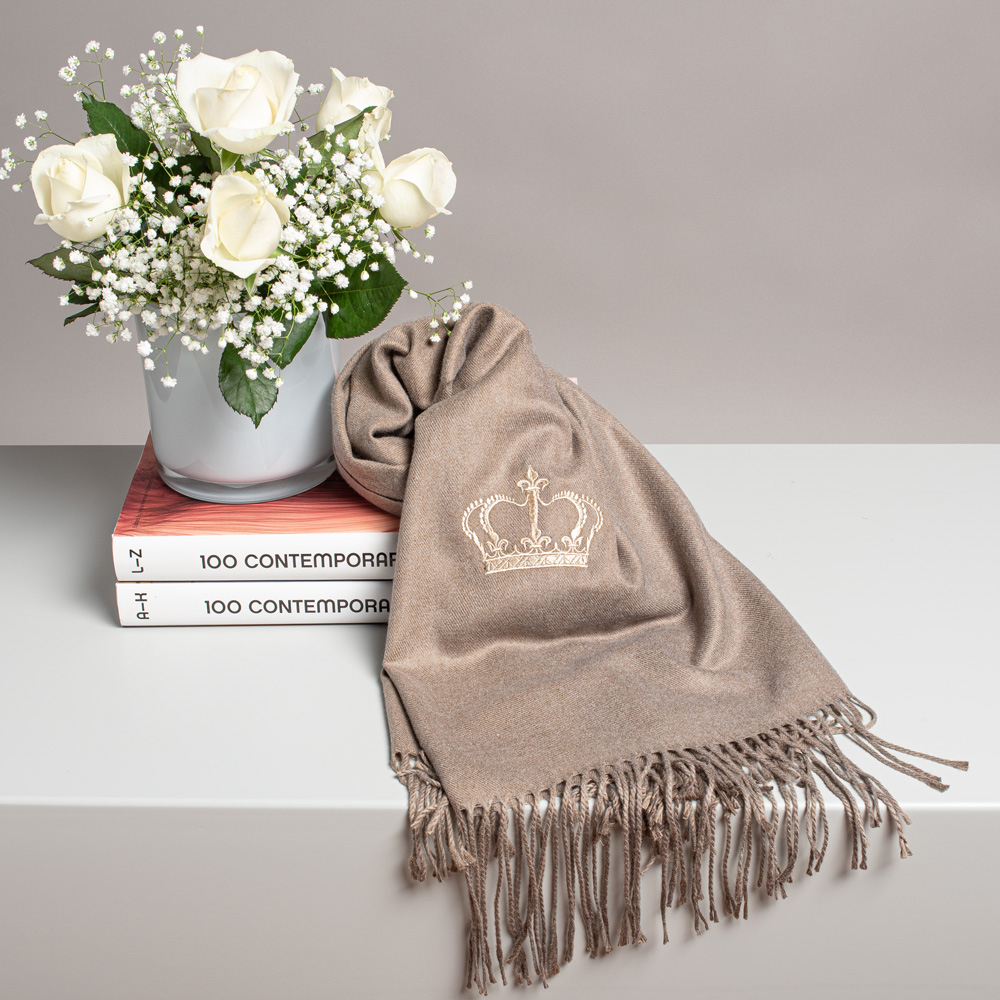 Beige Unisex Water Absorving Breathable Wrap, With White Crown Embroidery