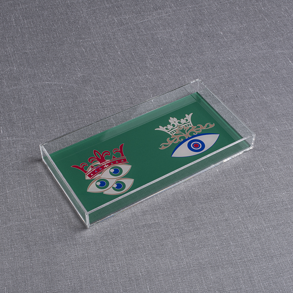 Plexiglass Tray With Green Base, Crowns & Evil Eyes In Collaboration With Liana Vourakis