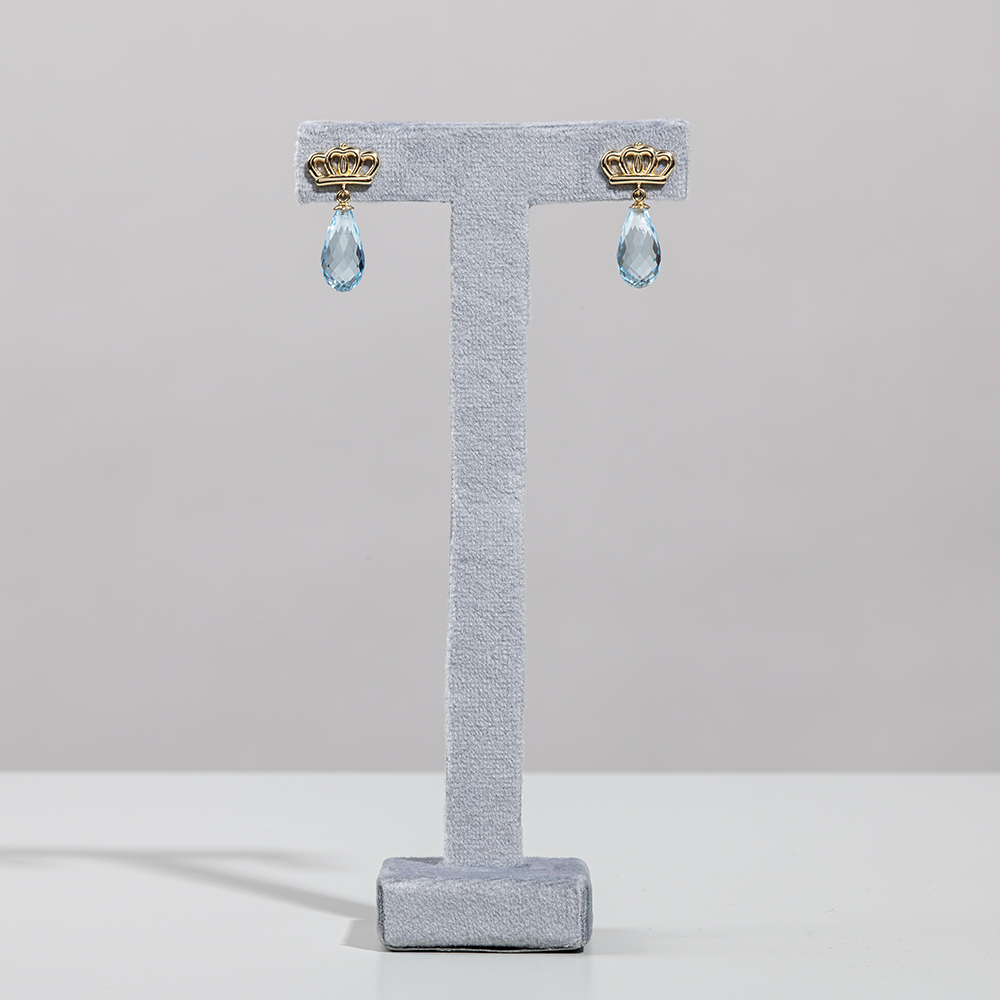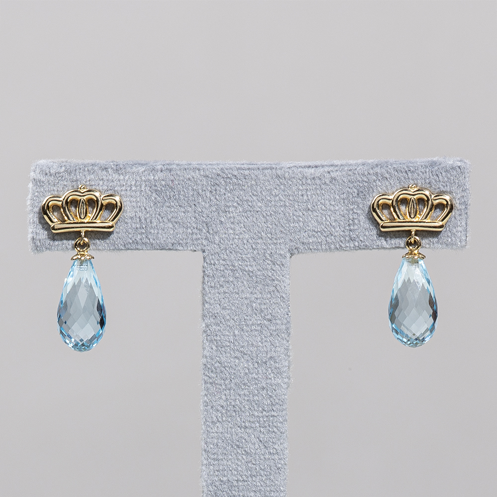Yellow Gold Crown Earrings With Blue Topaz, in Collaboration With Pearls Center
