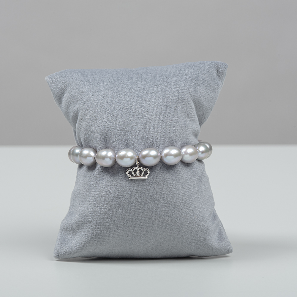 Bracelet With Grey Fresh Water Pearls & White Gold Crown, In Collaboration With Pearls Center