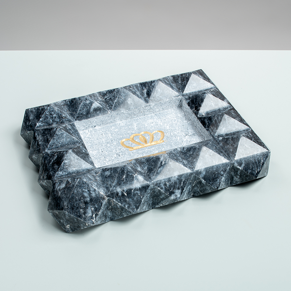 A refined decorative object sculpted from Livadia marble, designed to elevate any interior with understated elegance. Its handcrafted geometric surface highlights the natural veining of the stone, while the gold crown detail introduces the signature touch of the MyCrown Collection. Perfect as an ashtray or decorative centerpiece, it brings a subtle sculptural presence to your space. Each item is unique due to the natural characteristics of the marble, in collaboration with Georgiou Atelier.