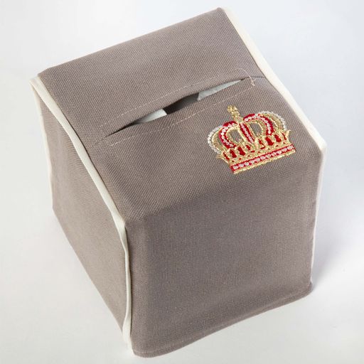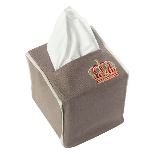 Small Brown Tissue Cover, With Golden Crown Embroidery