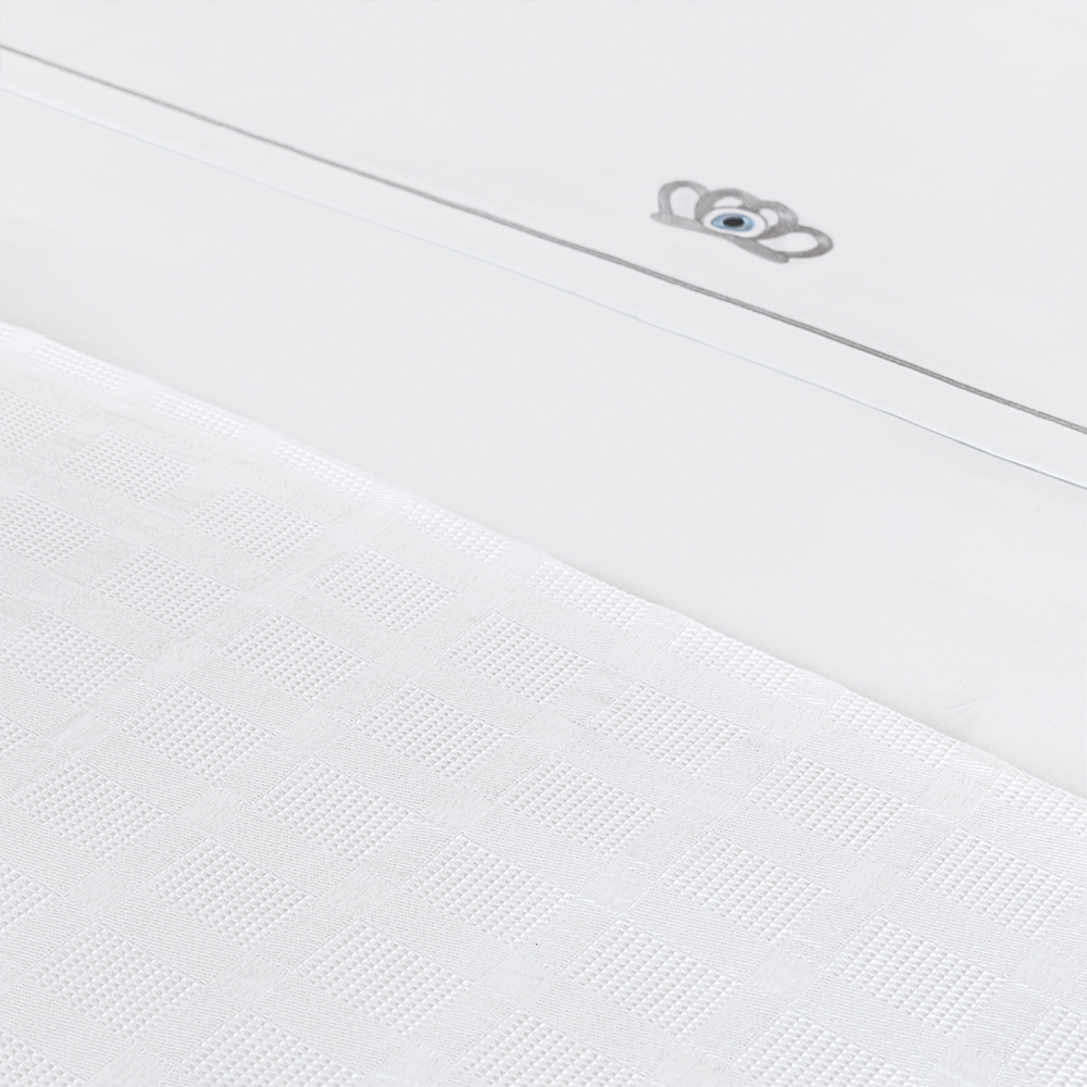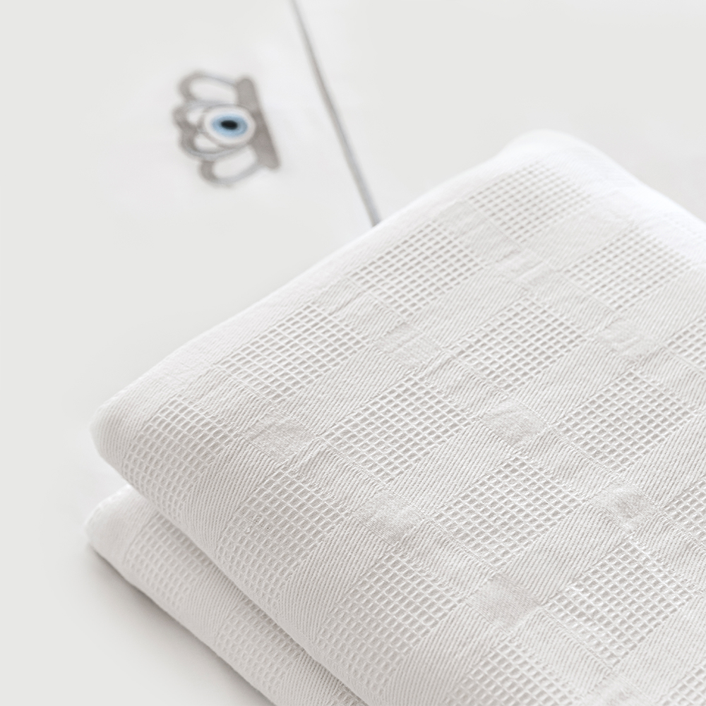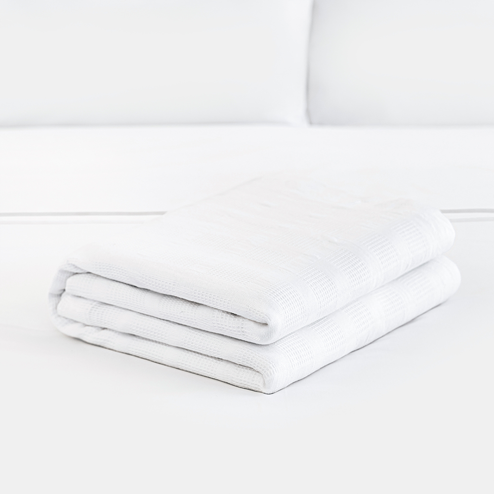 Single white waffle blanket, soft and breathable. Designed in a classic pique weave, it offers gentle texture, ideal for spring and summer or for continued use in warm climates.