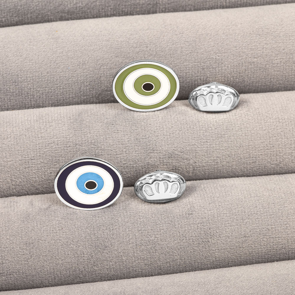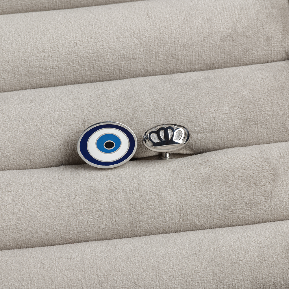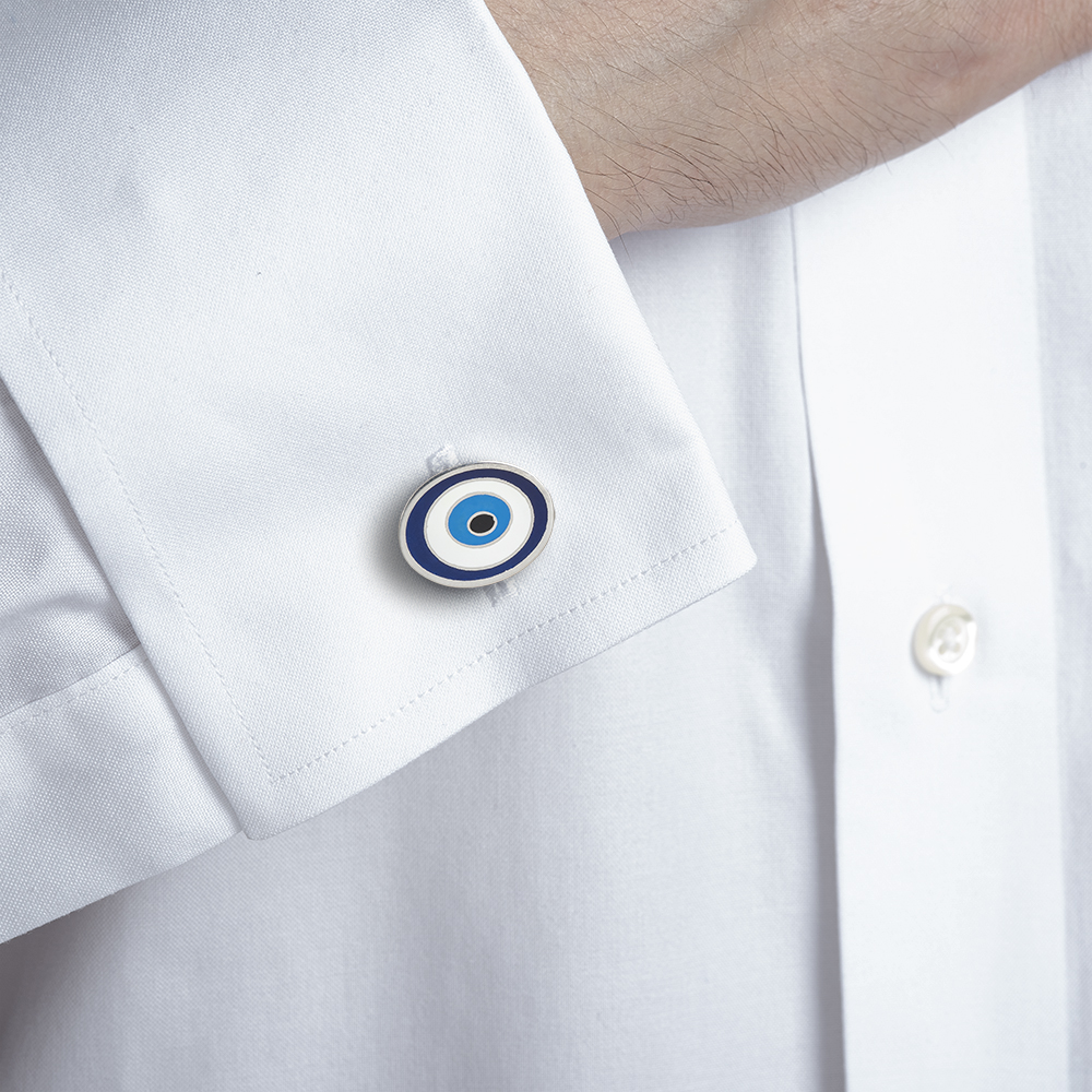 Silver Cufflinks With Blue Evil Eye Motifs For Luck & Protection