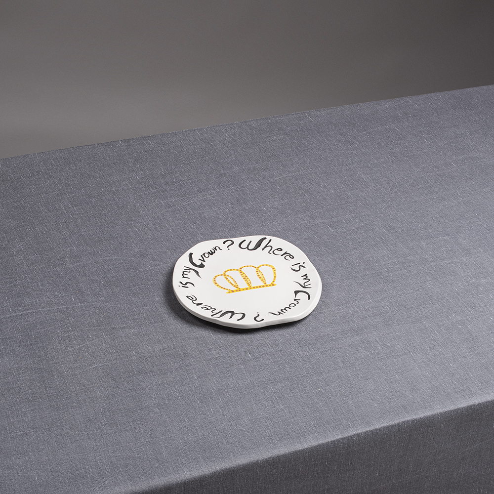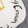 White Dessert Plate With Hand-painted Golden Crown & Black Quote, In Collaboration With Mihaila Ceramics