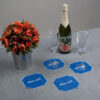 Set Of 4 Blue Water Resistant Coasters, With White Embroidery & Quote