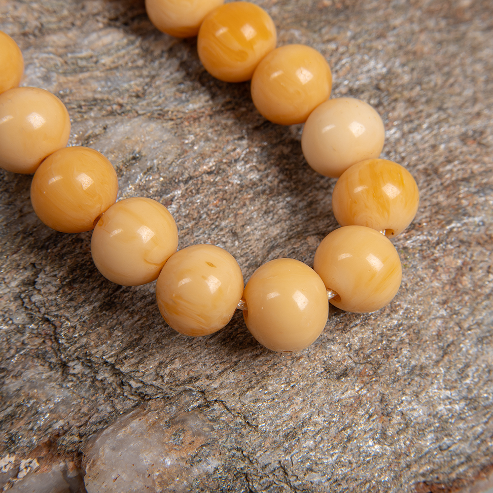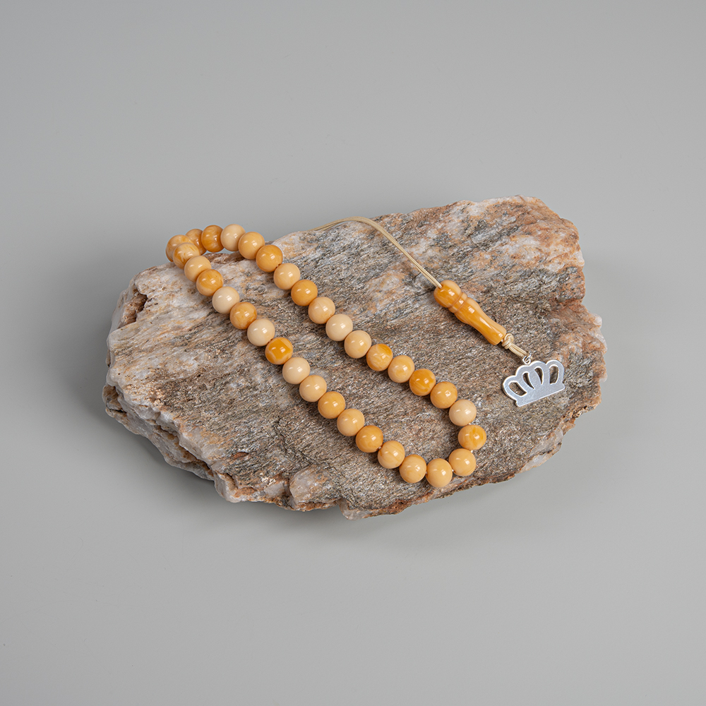 Handcrafted worry beads in warm honey and ivory tones, smoothly polished and elegantly strung, finished with a signature silver tone crown charm. A unique accessory that celebrates Greek tradition while embracing contemporary elegance, designed to inspire calm, balance, and timeless refinement, in collaboration with Serkos.
