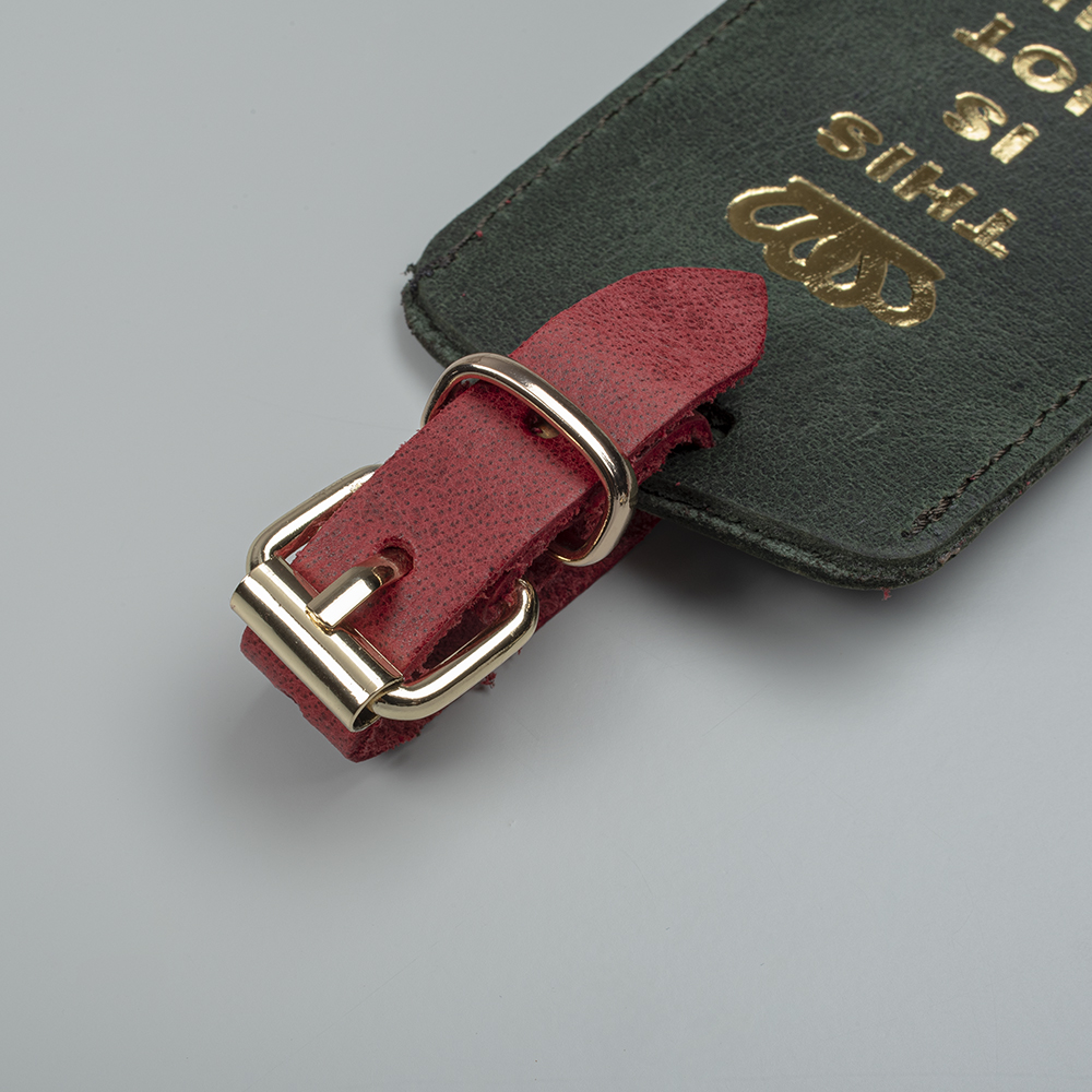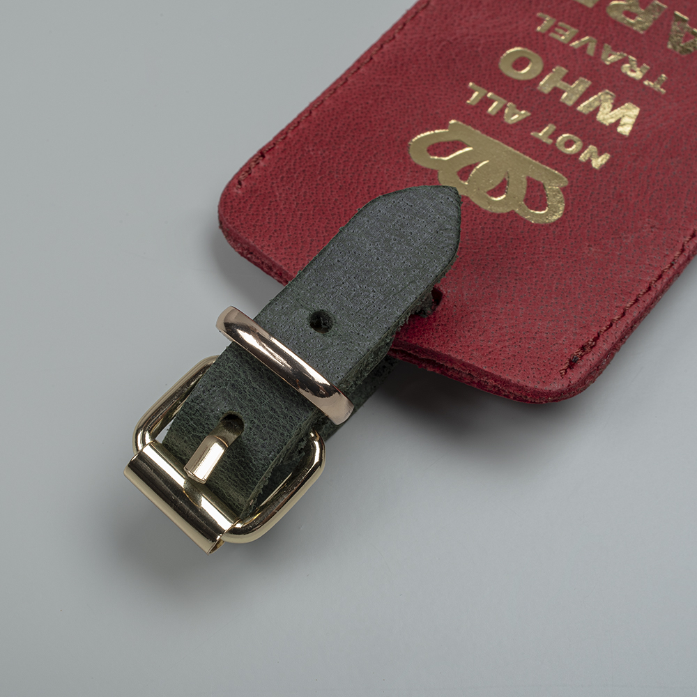 Set Of Two Luggage Tags In Dark Green & Bordeaux Colors, With Golden Printed Quotes